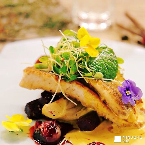 海鲈鱼柳配藏红花白葡萄酒汁、野生牛肝菌烩意大利米饭
