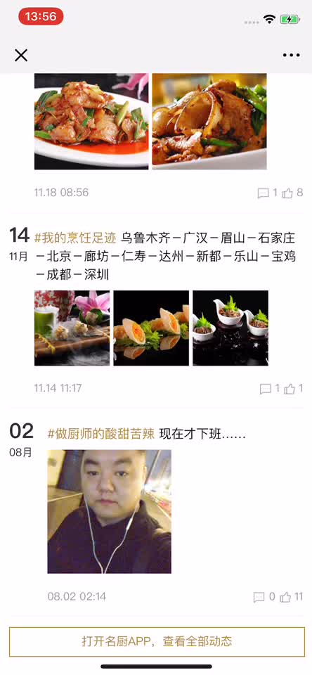 打开名厨App,查看全部动态